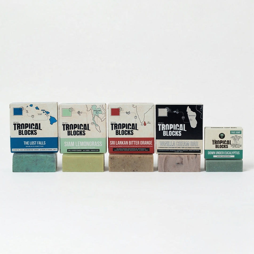 הסבונים המוצקים של Tropical Blocks לא מכילים כימיקלים, פרבנים או חומרים משמרים, ומהווים את הבחירה הטובה ביותר לעור הגברי